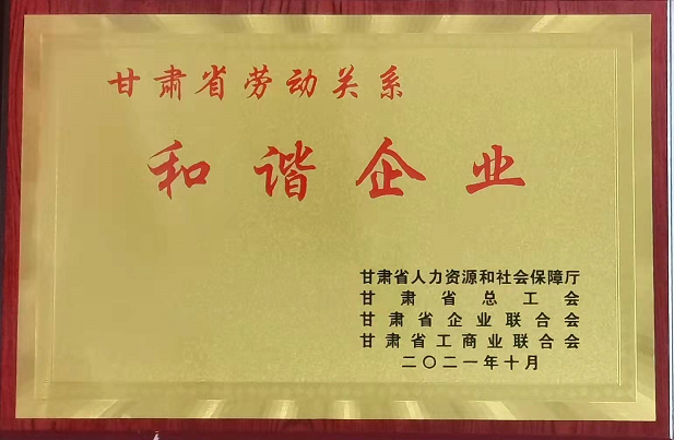 此次獲得“甘肅省勞動關(guān)系和諧企業(yè)”稱號,是對我司認真貫徹執(zhí)行勞動保障法律政策、規(guī)范勞動用工管理工作成效的認可和肯定。我司將以“甘肅省勞動關(guān)系和諧企業(yè)”為新的起點,加強公司建設(shè),進一步促進企業(yè)健康發(fā)展,為構(gòu)建和諧社會作出更大貢獻。